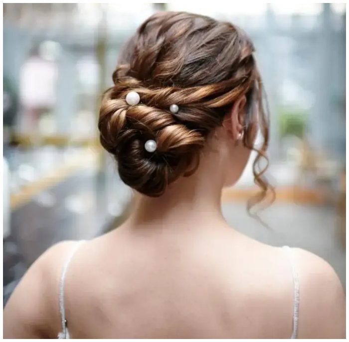 6. Low Bun with Accessories Transform a simple low bun into a statement piece with the right accessories. Sparkly hairpieces, ornate combs, or even a dramatic veil can elevate the simplicity of a low bun, adding a touch of luxury and personality to your bridal ensemble.