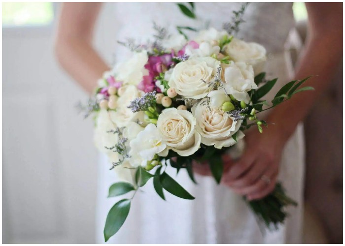 Your bouquet should seamlessly blend with your wedding colors and the overall theme. Whether your palette is made up of soft blues, whites, and blush pinks or bolder tones, your bouquet can pull these colors together for a cohesive look. When working with your florist, be sure to bring color swatches of your bridesmaids’ dresses and décor, so they can suggest flowers that will harmonize with the scheme. Additionally, consider the shade of your wedding dress. Whether it’s true white, off-white, cream, or ivory, the bouquet’s flowers should complement the tone, enhancing your entire bridal look.