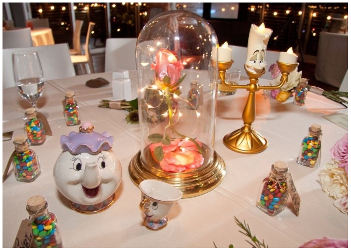 Decor is where you can really bring your Disney theme to life. Use color schemes and decorative elements that echo your chosen movie. For instance, use red roses and candlesticks for a “Beauty and the Beast” theme or lush greens and florals for a “Jungle Book” vibe.