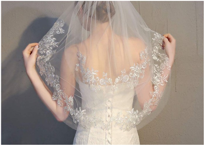 Your wedding venue can influence your veil choice. For a beach wedding, opt for a lightweight, flowing veil that won’t be weighed down by wind or sand. A garden wedding pairs beautifully with a lace veil, while a grand ballroom wedding suits a formal, dramatic veil with glimmering details. For a city venue, sleek and modern veils work best.