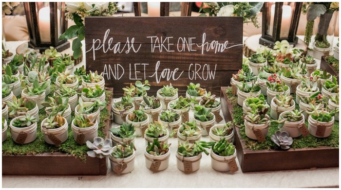 Instead of using cut flowers, consider decorating with potted plants. These can be used as centerpieces, altar décor, or even favors for guests. Potted plants last far beyond the wedding day and reduce the need for imported flowers, cutting down on your event’s carbon footprint.